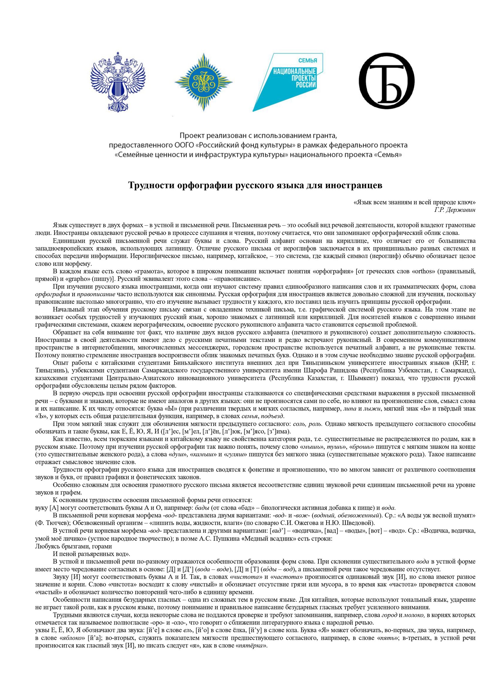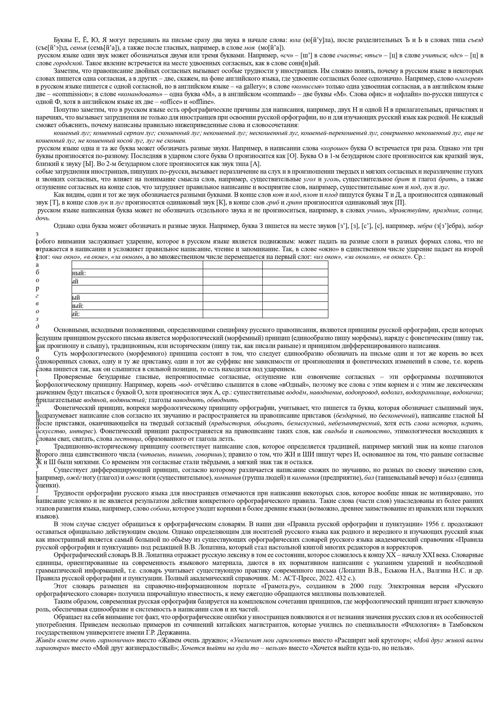 Трудности орфографии русского языка для иностранцев